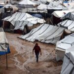 Mourners gather around the bodies of eight Red Crescent emergency responders, recovered in Rafah a week after an Israeli attack, as they are transported for burial from a hospital in