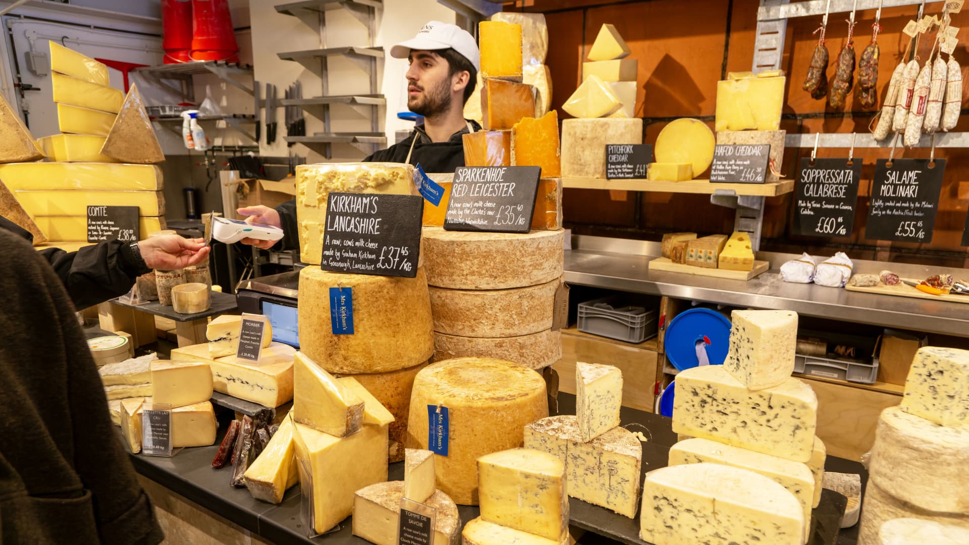 Interior of cheese monger specialist cheese shop, Mons cheese mongers, East Dulwich, London, England, UK. Geography Photos | Universal Images Group | Getty Images The U.K.’s annual inflation rate was
