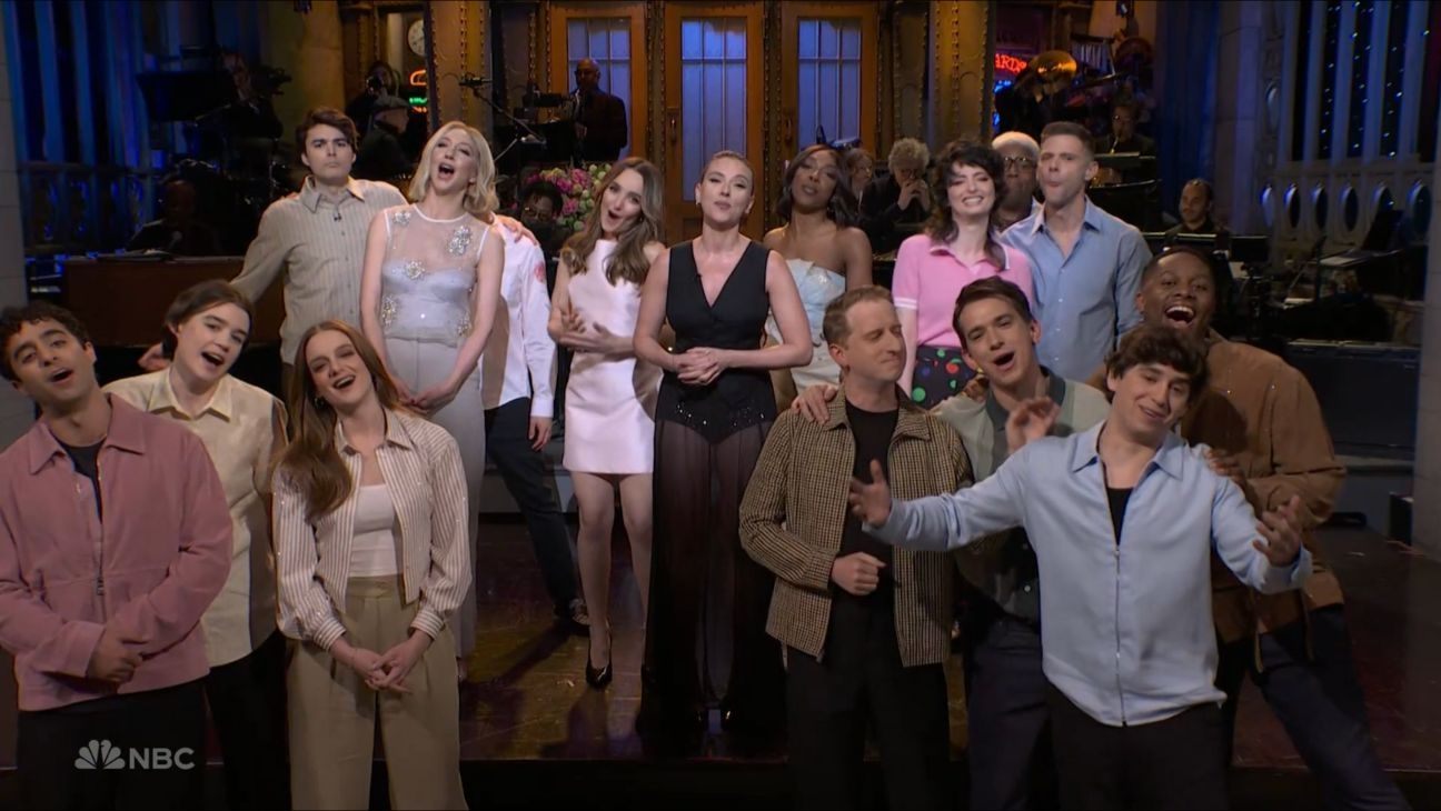 Scarlett Johansson and the cast of Saturday Night Live paid tribute to the show’s 50th season with a musical opening monologue that riffed on Billy Joel’s classic hit “Piano Man.”