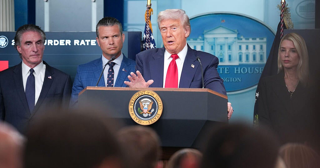 Washington — President Trump said Monday that he is deploying members of the National Guard to Washington, D.C., and that the federal government has taken control of the D.C. police