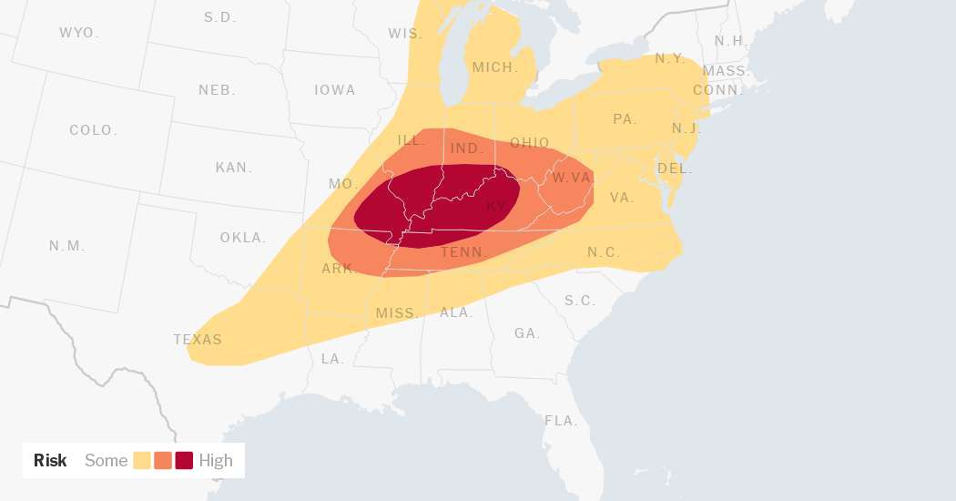 Large portions of the Midwest and the Mid-Atlantic are at significant risk of severe weather on Friday, as a multiday storm system moves slowly to the East. A bull’s-eye centered
