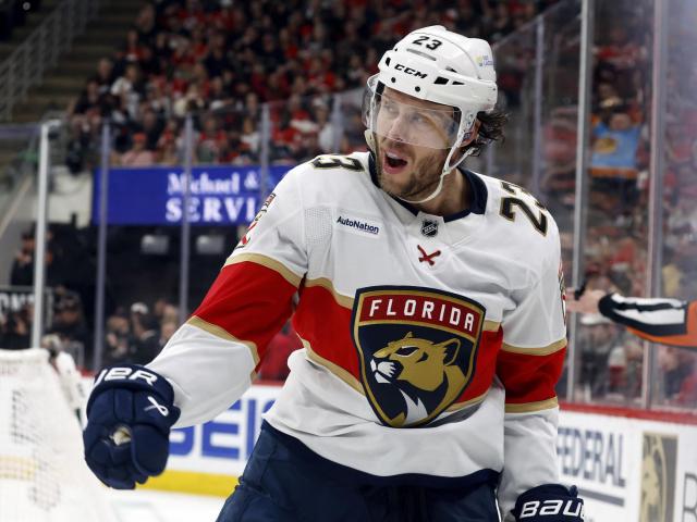 Carter Verhaeghe gave the Panthers a 4-3 lead at 12:21 of the third period. Aleksander Barkov made a backhand pass across the crease to Verhaeghe, who scored at the right