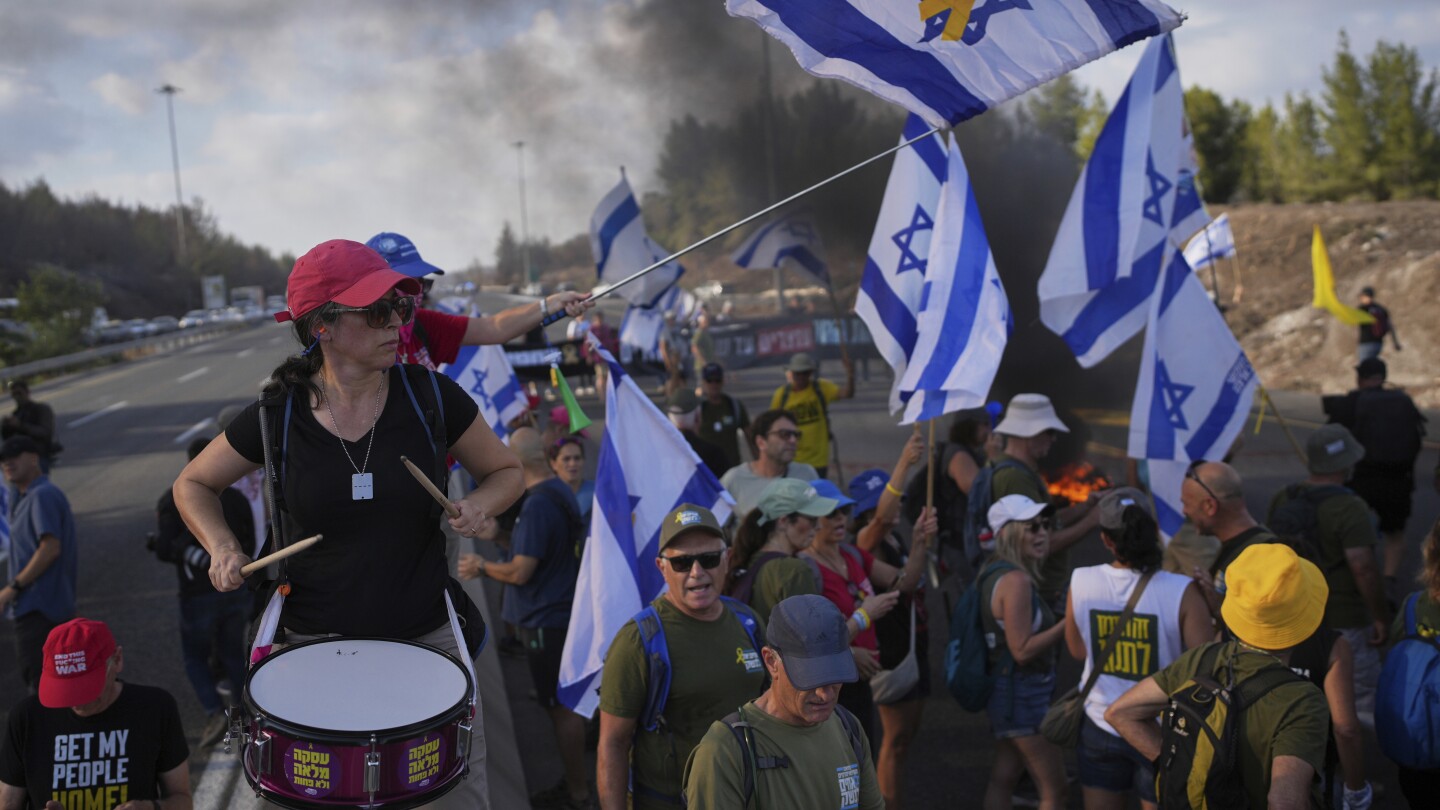 JERUSALEM (AP) — Protesters in Israel demanding a hostage deal escalated their campaign Sunday with a one-day nationwide strike that blocked roads and closed businesses, as police blasted crowds with