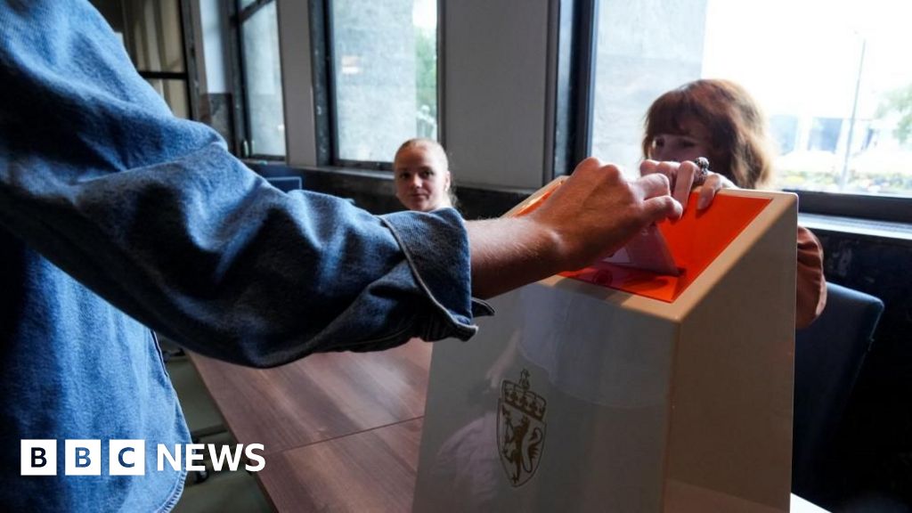 Alex MaxiaBBC News, in Norway STIAN LYSBERG SOLUM/NTB/AFP Conservative Erna Solberg is challenged by Labour’s Jonas Gahr Støre during a TV debate in the run-up to the election Norwegians are